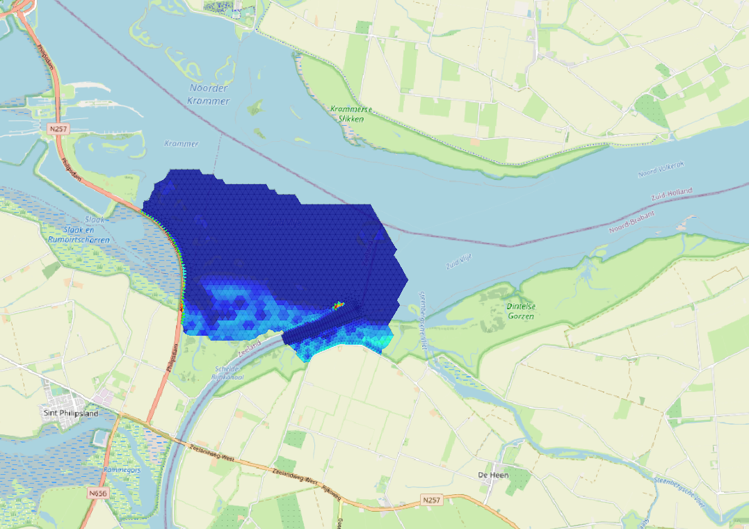 The output of the following functionalities has been shown for a section of the Lake Volkerak 3D hydrodynamic model in the Netherlands. This hydrodynamic model output contains 6 years of data (2011 – 2016), with a timestep of 10 days. The 3D hydrodynamic model has been setup with 22 vertical layers and 3290 horizontal flexible mesh grid cells.