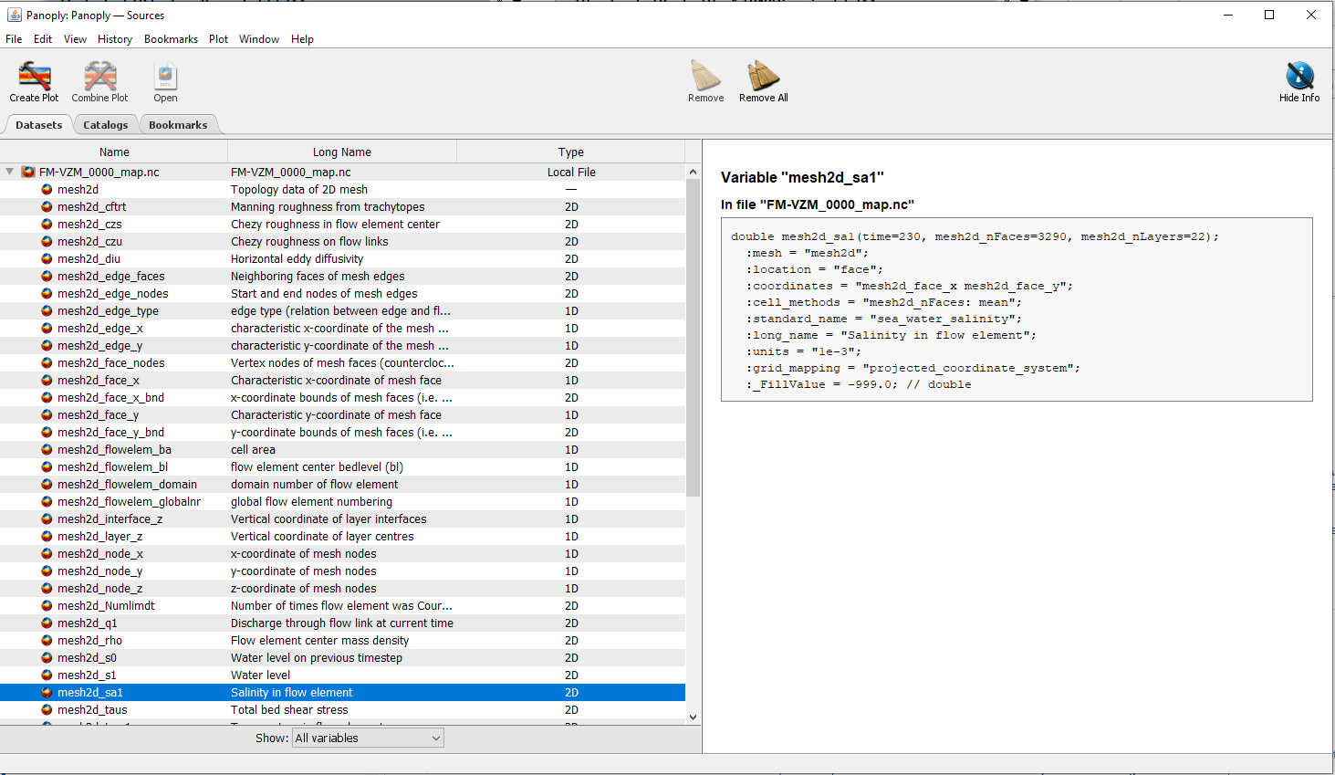 Panoply is useful for exploring the content of NetCDF files. It allows the user to see which variables are present in the file, over which dimensions these variables contain values (e.g. x, y, z, time) and what metadata is supplied with each variable. Especially when you have gotten a NetCDF file that you are not familiar with on which data it contains it can be useful to open it first with Panoply.