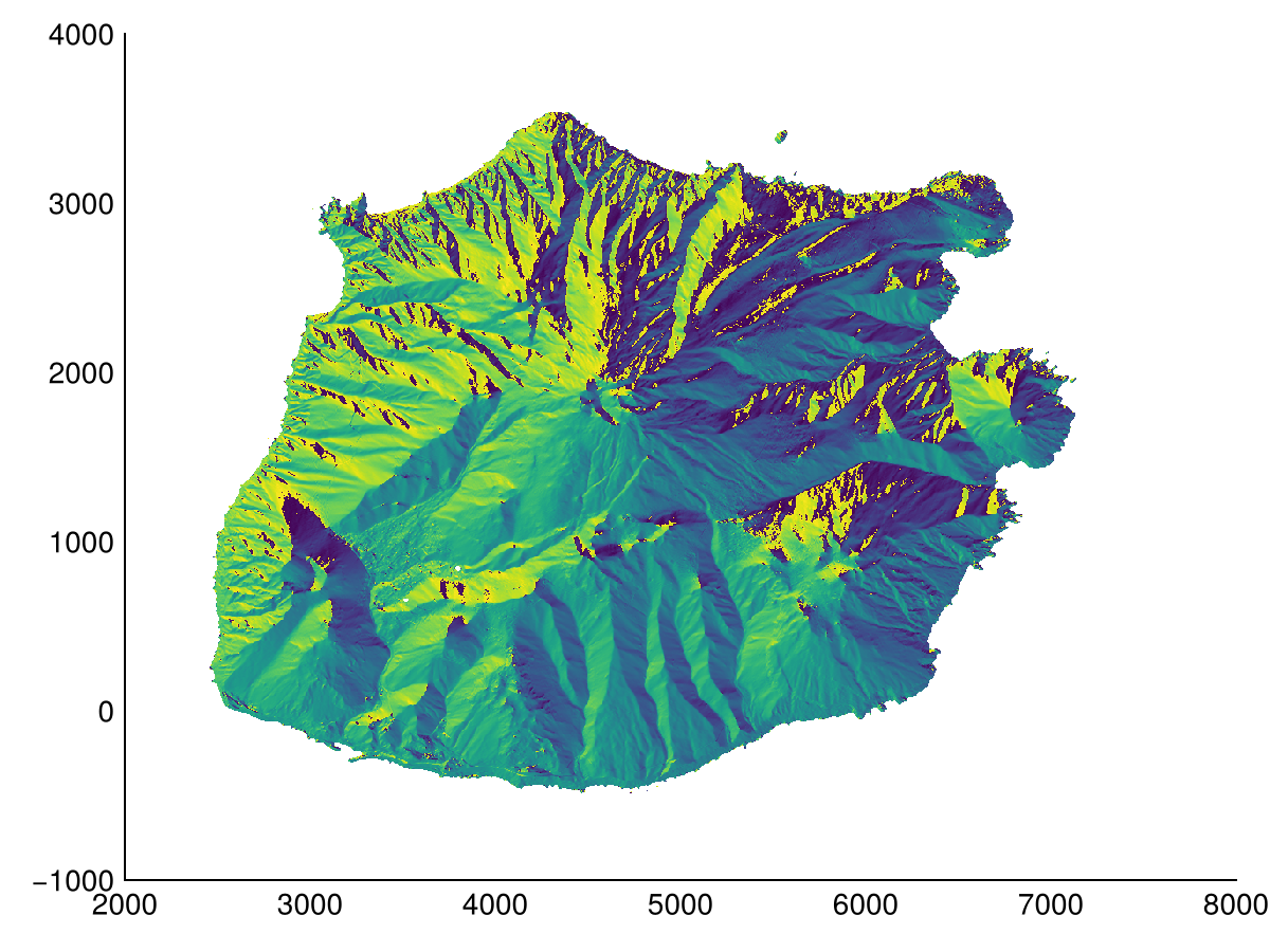 @info Geomorphometry.cellsize(ndem) # reversed y spacing┌ Error: Unknown CRS type, please report this issue for the given crs/file