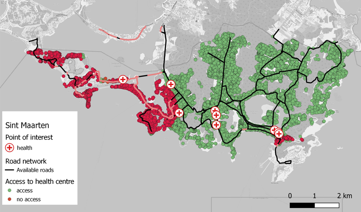 Example: For every household (origin), RA2CE finds the nearest hospital, the nearest school, and the nearest shelter (destinations).